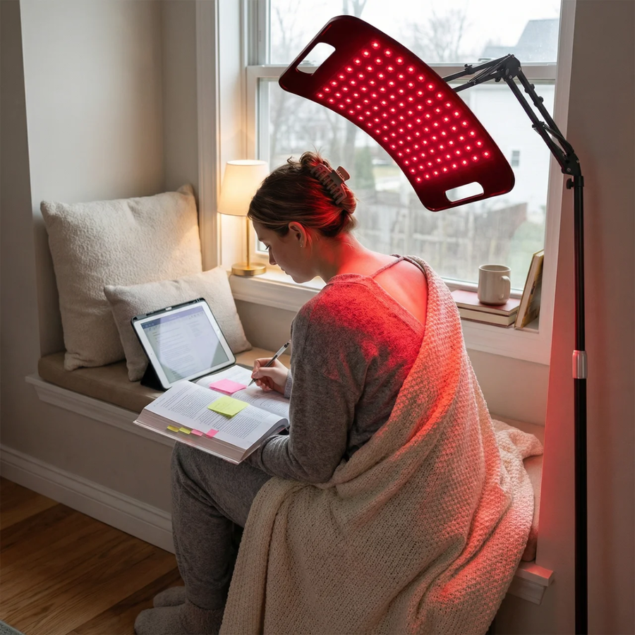 De verstelbare 360° standaard maakt het eenvoudig om elk deel van het lichaam te behandelen – van gezicht tot knieën en van nek tot onderrug. Je hoeft de lamp alleen in te pluggen en hij is direct klaar voor gebruik. Er zijn geen ingewikkelde instellingen of opwarmtijden nodig, waardoor je op elk moment van de dag kunt profiteren van een gerichte lichtbehandeling.